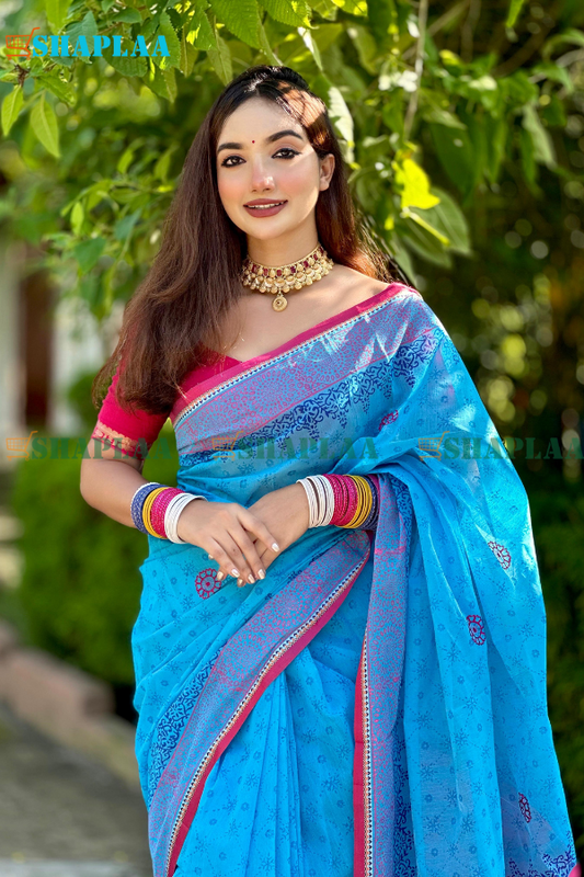 🌸 প্রিমিয়াম চান্দেরি সিল্ক শাড়ি