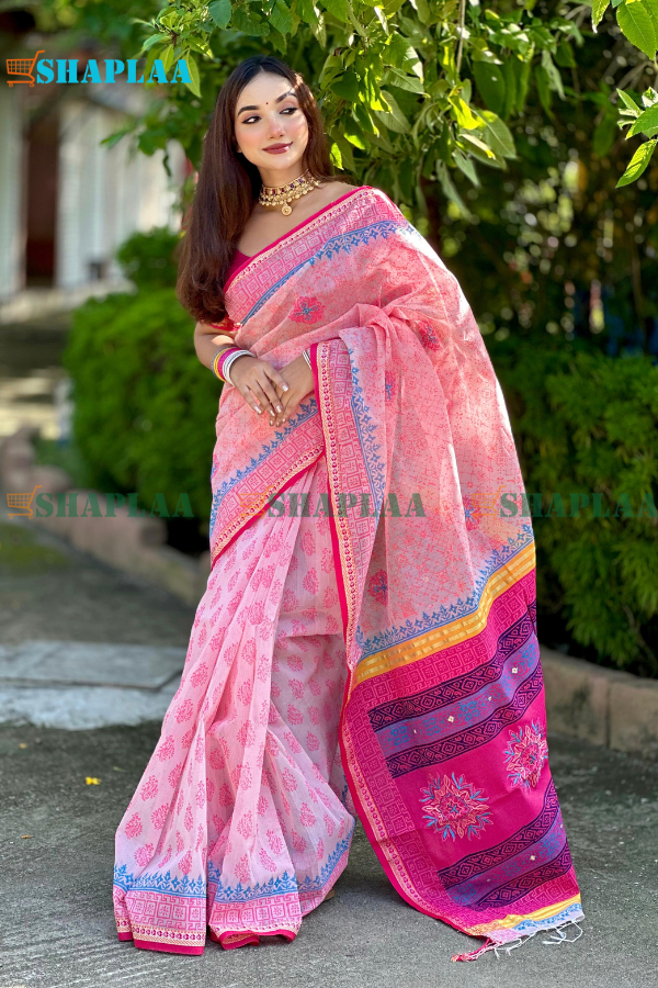 ✅ডিজাইন- কাঠ ব্লকপ্রিন্ট ও আচঁলে টারশেল এমব্রয়ডারি আছে।