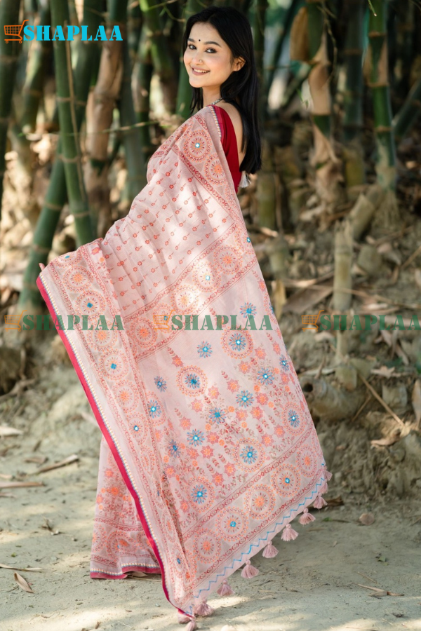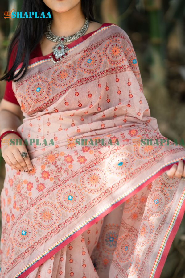 ✅ডিজাইন- কাঠ ব্লকপ্রিন্ট ও আচঁলে টারশেল এমব্রয়ডারি আছে।