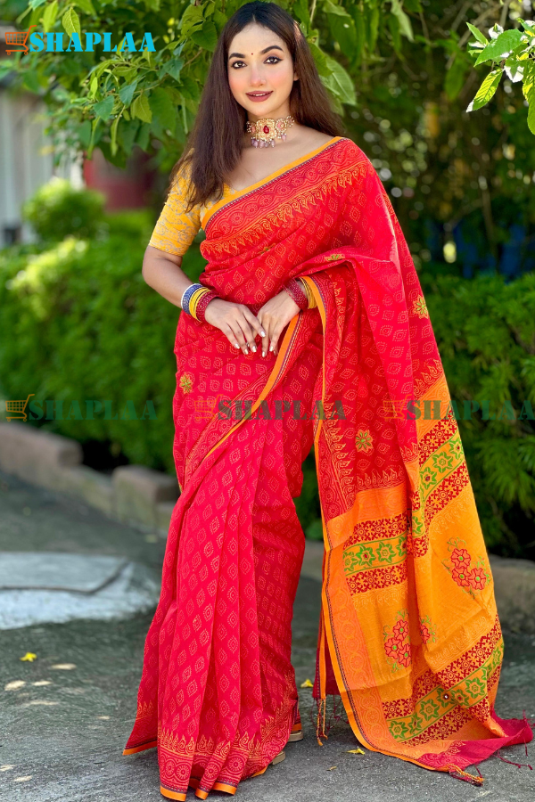 ✅ডিজাইন- কাঠ ব্লকপ্রিন্ট ও আচঁলে টারশেল এমব্রয়ডারি আছে।