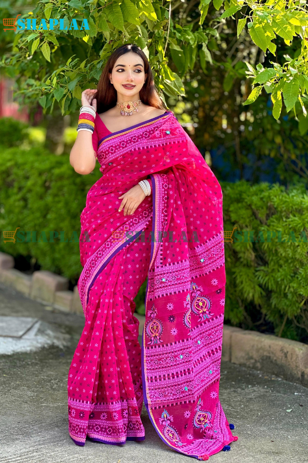 ✅ডিজাইন- কাঠ ব্লকপ্রিন্ট ও আচঁলে টারশেল এমব্রয়ডারি আছে।